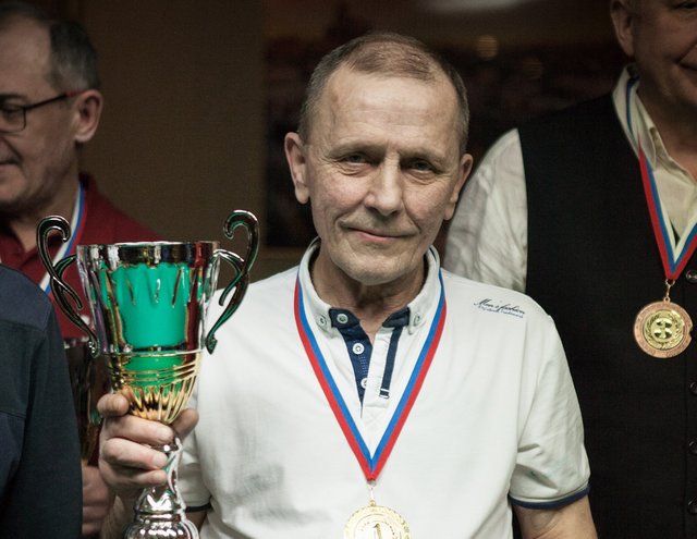 С 17 по 19 февраля в Москве прошёл международный любительский турнир "Золотая лига". "Золотая Лига" — международное объединение ветеранов труда, военной службы и любителей русского бильярда в возрасте 50 лет и старше. Она создана по инициативе Цигельникова Александра Сергеевича, проживающего в г. Анапа, в сентябре 2012 года. Участником "Золотой Лиги" может стать любой гражданин Мира, поддерживающий утверждённое положение, регламент, правила проведения игр и оплативший членский взнос. Любители бильярда должны быть благодарны Александру Сергеевичу Цигельникову за то, что он взялся за этот проект и удачно его развил. За прошедшие пять лет проведено большое количество турниров, в которых уже приняло участие более трёх тысяч любителей бильярда старшего поколения. В течении года проходит несколько турниров в разных городах и, как правило, проводится финальный турнир в бильярдном клубе "Сален-Профи" в г. Анапа, посёлке Витязево. В Московском турнире этого года зарегистрировано рекордное количество участников — 128 человек. При этом участники турнира были разделены на две группы: от 50 лет до 60 и от 60 и старше. Самым возрастным участником в этом турнире был Макаров Юрий Георгиевич, ему 85 лет . Справедливой будет его игра с 60 летним соперником без гандикапа? Наверное не очень, и не мудрено, такой разрыв в возрасте очень сильно влияет на возможности игрока. Я думаю организаторам нужно пересматривать положение о турнире с учётом возраста участников. И это достаточно просто. Всех участников турнира регистрировать в единой группе, но игры проводить с гандикапом. При разрыве в возрасте за каждые 10 лет младший должен давать фору одно очко. Только при регистрации на турнир нужно точно с паспорта ставить дату рождения каждому участнику. И список регистрации должен быть отпечатан и демонстрироваться на удобном для обозрения месте. Турнир в Москве прошёл на высоком организационном уровне и здесь большая заслуга Чубаря Александра Евгеньевича. С его подачи Главным спонсором этого турнира согласился быть "Московский кредитный банк". Призовой фонд, наградная атрибутика, сувениры для участников и гостей турнира, фуршет... всё это не без помощи банка. Удобство турнира обеспечило и то, что всё сосредоточено в едином комплексе: гостиница для иногородних, ресторан, рядом станция метро. И хотя большинство участников были из Московской зоны России, в турнире приняли участие представители: Украины, Литвы, Таджикистана, Сингапура и Финляндии, то есть турнир с полным правом может именоваться международным. Победителями в этом турнире стали: 1 Ермаков Сергей 1959 гр Литва 2 Школа Дмитрий 1963 Россия 3 Растемешин Александр 1966 Россия 3 Саркисян Армен 1963 Россия *** 1 Сердитов Анатолий 1954 Россия 2 Глезденёв Геннадий 1948 Россия 3 Анфимиади Гиви 1944 Россия 3 Бахтиозин Равиль 1953 Россия И несколько фотографий с этого турнира: ![]() ![]() ![]() ![]() ![]() ![]() ![]() ![]() ![]() ![]() ![]() ![]() ![]() ![]() ![]() ![]() ![]() ![]() ![]() ![]() ![]() ![]() ![]() ![]() ![]() ![]() ![]() ![]() |
