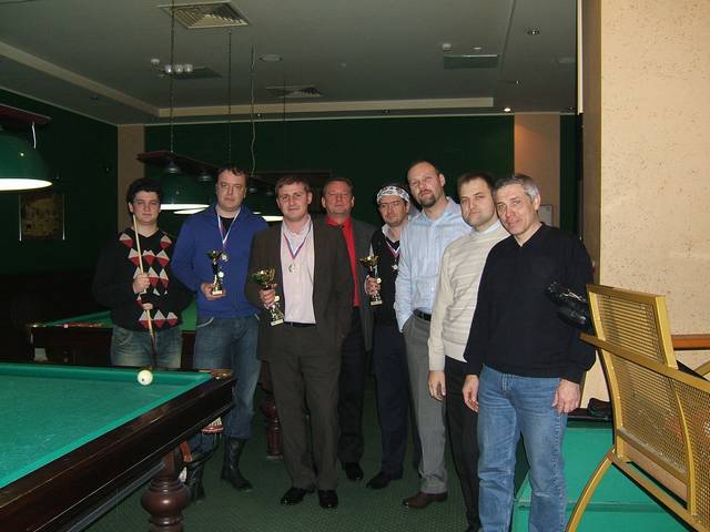 21 декабря 2009 г. завершился корпоративный бильярдный турнир группы компаний "ИТЕРА" в рамках одиннадцатой спартакиады. В турнире приняли участие сорок любителей бильярда, среди которых было достаточно много действительно играющих бильярдистов, в том числе две девушки с хорошей игрой Оксана Ткаченко и Александра Блинова. И хотя девушкам в этом турнире не удалось попасть в финальную часть соревнования, мы помним, что Александра в прошлом году заняла первое место. Седьмой день турнирных баталий закончился играми сильнейших бильярдистов ИТЕРы. За пятое место играли Колосов Сергей и Мельников Олег, здесь победил Олег. За третье место играли Тарасов Пётр и Отчерцов Егор. Пётр уверенно одержал победу. Украшением турнира стала финальная встреча двух опытных любителей бильярда Колосова Фёдора и Храмова Дениса. В первой партии Денис продемонстрировал хорошую и результативную игру, на которую, видимо не рассчитывал его соперник и выиграл её с внушительным перевесом. Во второй партии Денис опять хорошо стартует, он повёл со счётом 2:0, но потом игра как бы перевернулась и Фёдор показал свою настоящую игру - он забил несколько шаров из сложнейших позиций и уверенно завершил партию в свою пользу. В контровой партии Фёдор уже не рисковал, как в первой, и спокойно и ровно выиграл её, завоевав первое место в турнире. ![]() ![]() ![]() ![]() ![]() ![]() Перед встречей за 5-е место ![]() Перед встречей за 3-е место ![]() Финалисты ![]() Призеры |