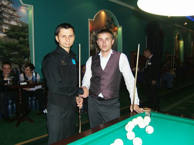 Основная часть турнира проходила в самом большом и комфортабельном бильярдном клубе Москвы - «Принц». В этом клубе достаточно просторно и любители бильярда имели возможность с близкого расстояния понаблюдать за игрой своих кумиров. Болельщиков было много из разных городов России. Здесь были и игроки, и тренеры, и судьи и просто любители нашей игры. Отмечался даже ажиотаж около некоторых столов, где проходили принципиальные встречи, ведь на кону были неплохие призовые. За первые три места у мужчин: 210, 120 и 89 тысяч рублей, а у женщин – 108, 60 и 44 тысячи рублей, и все участники до 16 места кое-что получили из призового фонда. Было за что побороться. Этап «Кремлёвского турнира» - в БК «Принц» был насыщен яркими и захватывающими поединками настоящих бильярдных бойцов и преподнес значительное количество сюрпризов. Уже то, что за чертой 25 места у мужчин оказались такие признанные мастера русского бильярда, как Кирилл Анищенко, Евгений Курта, Юрий Пащинский, Олег Речиц, Эдуард Галиянц, Владимир Петушков, Каныбек Сагынбаев, Владимир Вайнцвайг, говорит об уровне и бильярдном мастерстве участников этого турнира. Из ветеранов на турнире блистал Комаров Сергей из Ярославля. Лучше него «свояков» кажется никто на турнире не играл. Если бы в решающей девятой партии с Виджаем Дрангоем, когда даже счёт по шарам был 7:7, Сергей положил последний шар, который для него оказался роковым, возможно именно его, а не Виджая мы могли видеть в финале. Аналогично сложилась игра и у Ярослава Тарновецкого, в девятой контровой партии при счёте 7:7, он так же проиграл Павлу Меховову. Прекрасно смотрелся Владислав Осьминин, собранности, целеустремлённости, хладнокровию этого молодого спортсмена могли бы позавидовать и умудрённые мастера. Он в хорошем стиле обыграл прославленного Александра Паламаря. Московские любители мужского бильярда были огорчены тем, что их любимцы покинули турнир ещё на предварительной стадии турнира. Обидное поражение в контровой партии Юрия Пащинского лишило его возможности бороться за призовые места, а он ведь был явным фаворитом турнира. Уму не постижимо, как Юра в решающей партии ухитрился дважды «киксануть». Соперник этого не простил. Московский женский бильярд был традиционно на высоте. Диана Миронова не оставила своим соперницам шансов на первое место, да и Ольга Прохорова, занявшая второе место и выступающая за Армению - нашей московской школы. Мужские полуфиналы и оба финала проходили в «Демонстрационном зале» бывшего ГУМА, что напротив Кремля. Наверное, поэтому турнир назывался Кремлёвским. К сожалению, в ГУМе спортсмены яркой и красивой игры не показали. Диана Миронова в финальной игре была просто безупречна. И хотя Ольга Прохорова в первых двух партиях как то ещё боролась, далее она потеряла волю к победе и выгладила в матче простой статисткой. Борьбы не получилось. Ну а мужской финал вообще был весьма странным, если не сказать подозрительным. Казалось, Виджай Дрангой играл против самого себя, а Алихану Каранееву оставалось лишь демонстрировать своё мастерство. Да и в процессе награждения лица их были неестественно напряжены, такое впечатление, что удовольствия от матча они оба не получили. В итоге верхняя часть итоговых протоколов определилась следующим образом: Мужчины: 1. Алихан Каранеев Казахстан 2. Виджай Дрангой Молдов