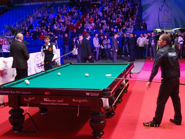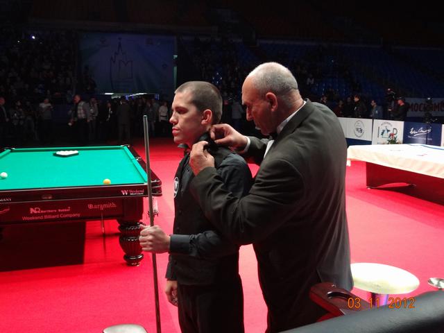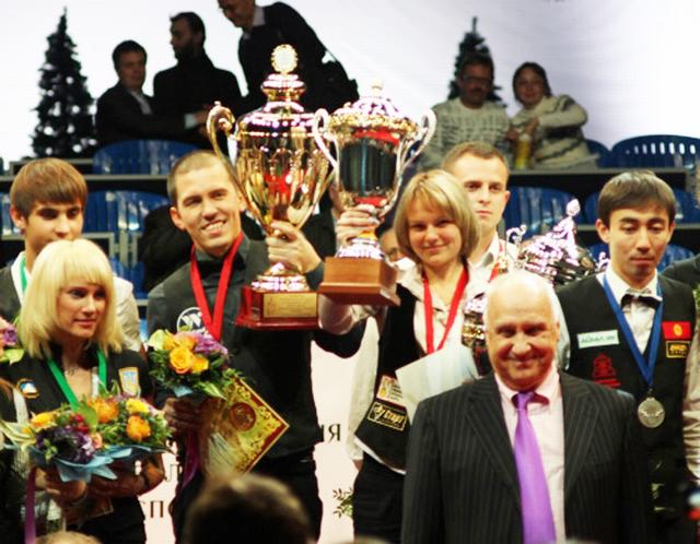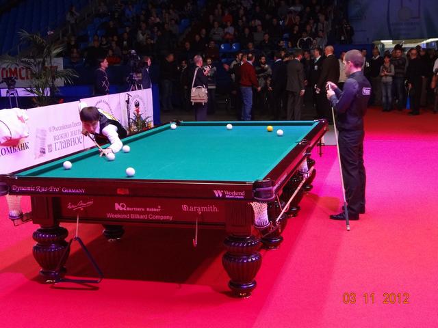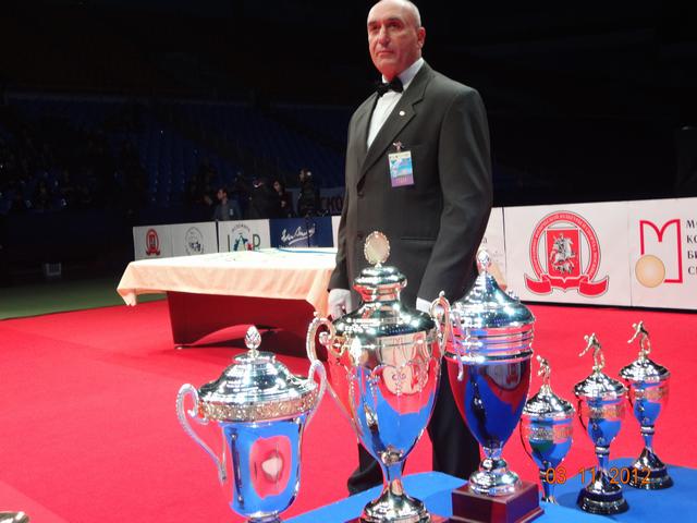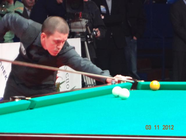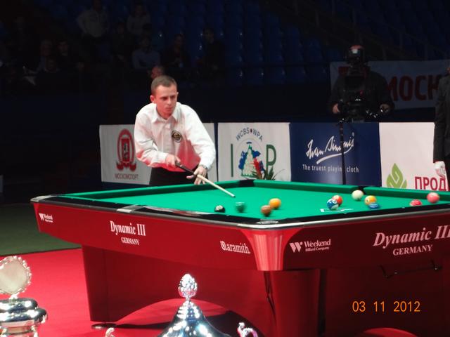 3 ноября завершился очередной, седьмой по счету, Кубок Кремля, который проводит Московская Конфедерация бильярдного спорта совместно с Международным комитетом по Пирамиде. В соответствии с программой Кубка, который был заявлен как Международный бильярдный турнир, были проведены состязания по «пирамиде» среди мужчин и женщин, а так же по пулу (разновидность игры - «десятка»). Организаторам Кубка удалось собрать внушительный призовой фонд и, как всегда, в Москву приехали сильнейшие игроки русского бильярда из России и стран ближнего зарубежья. На соревнования по «пирамиде» было заявлено 236 мужчин и 77 женщин, в пул — «десятку» играло 80 участников. И, хотя в Москве достаточно почитателей пула, основная масса болельщиков с нетерпением ожидала встреч ветерана и прославленного мастера Евгения Сталева с талантливой молодой порослью русского бильярда. И Евгений не подвёл своих почитателей, добравшись в нелёгких сраженьях до финала Кубка. Но об этом чуть позже... В пуловском финале встретились поляк Матеуш Снегоцки и эстонец Денис Граб. Многие титулованные пулисты, приехавшие в этот раз в Москву, остались за бортом финальных игр. Нельзя сказать, что игра финалистов была полностью безынтересна публике, ведь в зале было много почитателей этого направления в бильярде, но следует все же отметить, что финал не блистал яркостью и упорством борьбы. Кроме того, некоторые зрители вообще не понимали смысла этой разновидности пула, так как «десятка» стала разыгрываться на крупных соревнованиях сравнительно недавно. Победу в финале Кубка одержал Матеуш Снегоцки. Два третьих места достались греческим пулистам. Женский финал Кубка свёл между собой двух российских талантливых и ярких спортсменок «пирамиды» - москвичку Диану Миронову и Ольгу Милованову (Санкт-Петербург). Конечно, Диана Миронова значительно превосходила свою соперницу по рейтингу и спортивным достижениям, ведь она обладательница самых высших наград в русском бильярде за последние пять лет, начиная с юношеских соревнований и заканчивая титулом чемпиона Мира этого года. Так что перед началом встречи казалось, будто судьба женского Кубка уже решена. Однако Ольга решила без боя не сдаваться. На старте поединка она даже вышла вперёд, выиграв первую партию со счётом 1:8. После этого Диана выиграла четыре партии подряд и создалось впечатление, что она «успокоилась». Однако Ольга не пожелала покоряться судьбе и показала всю силу своего характера и незаурядное мастерство, выиграв последующие три партии. Счёт встречи стал равный 4:4, и обладательницу кубка должна была определить контровая партия. Игра в этой партии была напряжённой настолько, что даже на лице нашей Дианы — победительницы можно было прочесть неуверенность в благополучном исходе. Но как говориться в известной пословице, «везёт сильнейшим». Диана одержала в этой партии победу со счётом 8:5 и стала обладательницей Кубка Кремля, и это уже не в первый раз. Два третьих места достались украинским спортсменкам. Наконец настало время главного события этого Кремлёвского турнира — финальная встреча мужского Кубка Кремля. Нельзя сказать, что путь Евгения Сталева к финалу был таким уж безоблачным. На подходе к финалу он обыграл: Тишина И. (4:0), Пивченко А. (4:2), Крюкова В. (5:2), Плотникова П. (5:2), Ващенкова Г. (5:3), Солотовского Е. (5:3), Дранг