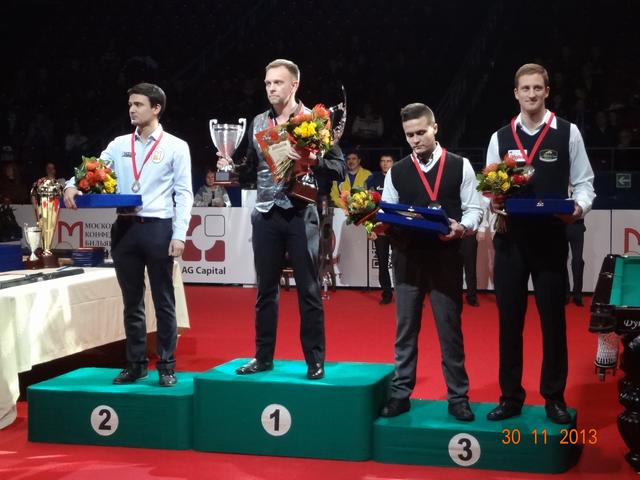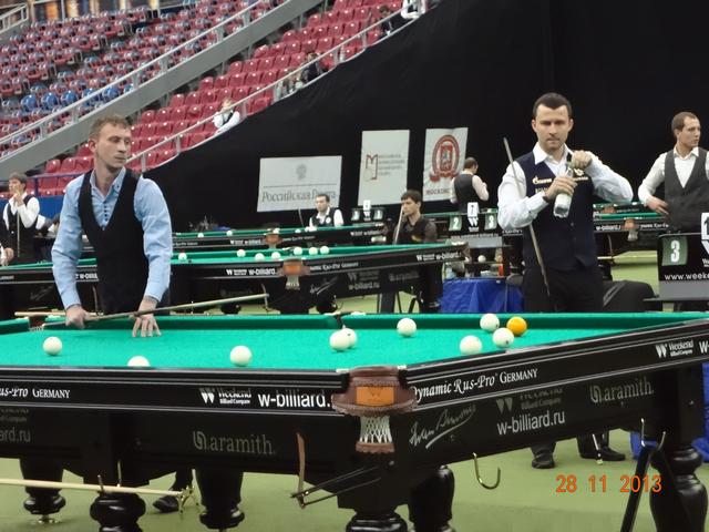 Действительно Кремлёвский турнир этого года получился самым грандиозным за всю историю бильярдных соревнований России. Это касается и количества участников этого турнира (488 человек) и призового фонда выставленного организаторами соревнований (4 миллиона рублей) и количества действительно иностранных спортсменов, приехавших на этот турнир. В рамках этого турнира прошли соревнования по русскому бильярду отдельно для мужчин и женщин и соревнования по пулу "десятке". На мужской турнир по русскому бильярду зарегистрировались 318 человек. Почти все сильнейшие игроки постсоветского пространства съехались помериться силами и побороться за приличный призовой фонд, который составил в этот раз 1,5 миллиона рублей. На женский турнир по русскому бильярду зарегистрировались 88 человек. Призовой фонд для них состалял 1 миллион рублей. На турнир по пулу зарегистрировались 82 человека, призовой фонд 1,5 миллиона рублей. Разумеется призовой фонд распределялся на первые 32 места в различных пропорциях, но это обеспечивало возмещение затрат на проезд и проживание почти всем, кто смог вклиниться в число первых 32-х. Ну а те, кто смог подняться до четвёртого места не плохо подзаработали на этом турнире. Конечно судейской бригаде пришлось поломать голову, как успеть сыграть всё это за четыре дня: мужской турнир разыгран в 703 встречах, женский в 239 встречах. Поскольку турнир проходил в Москве, естественно и количество москвичей в турнирах было достаточно большое. Некоторые из них имеют высокие звания мс, мсмк, змс, но их соперники отнеслись к этому скептически и прекратили их страдания уже на начальном этапе Кубка. В мужском турнире по русскому бильярду москвичей участвовало более 50 человек, но большинству из них выпала доля статистов. Пьедестал обошёлся без москвичей, более того никто из них не отметился ни в восьмёрке, ни в шестнадцати. В число 32-х вошли лишь двое: Румянцев Дмитрий и Сталев Евгений. У девушек москвичек положение значительно лучше: Миронова Диана на пьедестале (1 место), в группе 9-16 Бордыга Наталья и Ромодина Евгения, в группе 17-32 Прохорова Ольга, Трофименко Наталья, Конобеева Надежда, Нагула Элина и Карбовская Екатерина. В пуле у москвичей положение на турнире могло быть лучше, но что-то не сложилось. Константин Степанов играл в финале и имел шансы стать победителем турнира, но его соперник Хофман Торстен из Германии оказался более удачливым, особенно на старте поединка, и в итоге одолел нашего Константина. И так, Константин на втором месте, близко к пьедесталу наших нет, в группу 9-16 смог пробиться только Евгений Сталев. Предлагаю фотографии с этого турнира: ![]() ![]() ![]() ![]() ![]() ![]() ![]() ![]() ![]() ![]() ![]() ![]() ![]() ![]() ![]() ![]() ![]() ![]() ![]() ![]() ![]() ![]() ![]() ![]() ![]() ![]() ![]() ![]() ![]() ![]() ![]() ![]() ![]() ![]() ![]() ![]() ![]() ![]() ![]() |