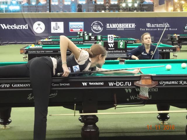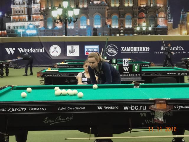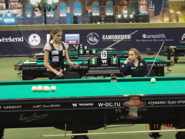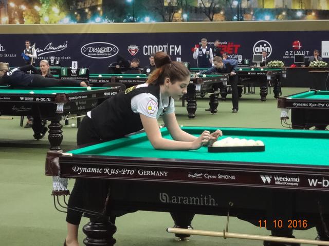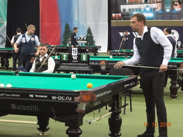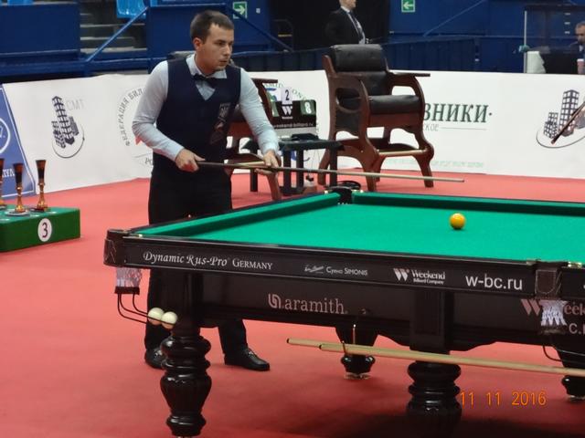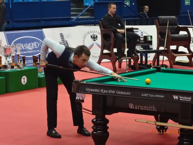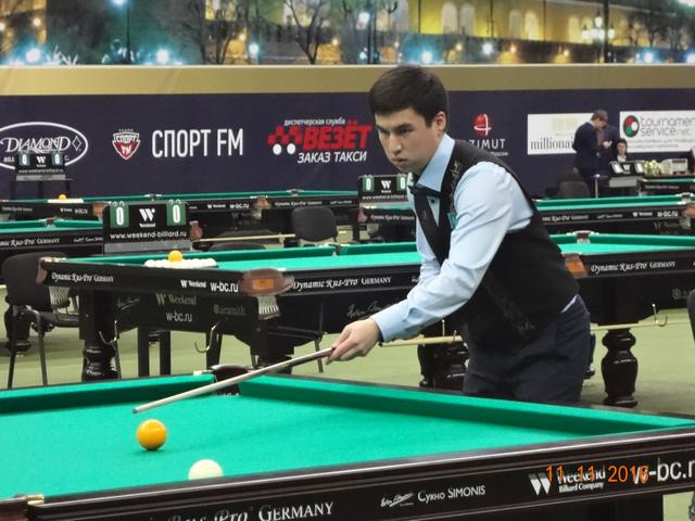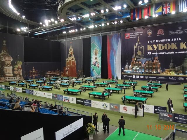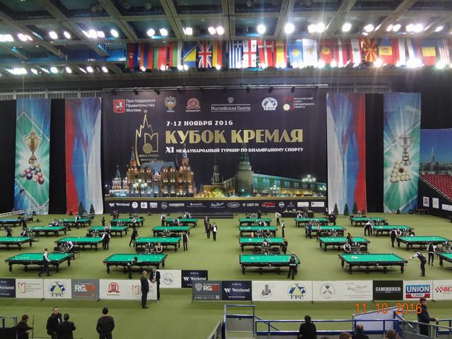В спортивном комплексе «Олимпийский» 12 ноября завершился XI Международный бильярдный турнир «Кубок Кремля». В этом году на Кубок прибыло рекордное количество участников: 277 спортсменов играли в «комбинированную пирамиду», 67 спортсменок боролись за призы в «свободную пирамиду» и 100 спортсменов в смешенном разряде(мужчины и женщины) играли в пул. Первый Кубок Кремля проходил в 2005 году в Государственном Кремлевском Дворце и на него были приглашены 16 сильнейших игроков русского бильярда того времени. Обладателем первого Кубка стал бильярдист из Казахстана – Каныбек Сагындыков, второе место тогда занял Кирилл Анищенко. Из года в год популярность этого турнира только возрастала, с каждым разом количество участников становилось всё больше и организаторы перенесли эти соревнования в спортивный комплексе «Олимпийский». Со временем изменились и Правила игры и формат проведения этого турнира. Сегодня «Кубок Кремля» стал открытым турниром, участие в котором может принять любой желающий, независимо от спортивной формы. Для этого достаточно пройти регистрацию и уплатить регистрационный взнос. В этом году этот взнос составил: для мужчин, играющих в «пирамиду» - 6 000 рублей, для женщин — 5 000 рублей, а для игроков в пул — 10 000 рублей. Общий призовой фонд турнира: 7 000 000 руб. Места с 1 по 32 были призовыми и предусматривали денежное вознаграждение. Именно возможность компенсировать затраты и даже выиграть и побуждает многих нынешних спортсменов выступить на этом престижном спортивном форуме. Кажется не так уж сложно войти в число 32 участников раздела призового фонда, но на практике 8 мастеров спорта международного класса на этом турнире пролетели мимо, не говоря уже о сотне просто статистов этого турнира. Да были интересные и интригующие встречи, особенно на заключительном этапе турнира, но в массе своей игры не вызывали интереса публики, поэтому огромный зал «Олимпийского» был почти пустой. В зале в качестве зрителей были в основном спортсмены, тренеры, и их представители и родственники, хотя в Москве почитателей бильярда предостаточно. Отсутствие рекламы, удалённость играющих от публики, встречи с предвиденным окончанием не вызывают желание у бильярдной публики терять свое время впустую. Но мы ведь хотим развития и популяризации нашего бильярда, возможно что то пора уже менять. 16 сильнейших на этом турнире в «пирамиде комбинированной»: 1 Белозеров Дмитрий 1994 МС Николаев 2 Омаров Алибек 1993 МСМК Караганда 3-4 Крыжановский Сергей 1996 МСМК Кишинёв 3-4 Есиддинов Камолиддин 1982 МС Ош 5-8 Чимбаев Ернар 1988 МСМК Алматы 5-8 Еркулев Олег 1988 МСМК Самара 5-8 Тарновецкий Ярослав 1990 ЗМС Черновцы 5-8 Пан Максим 1992 МС Тараз 9-16 Локтев Виктор 1990 МСМК Кемерово 9-16 Ващенков Глеб 1991 МС Симферополь 9-16 Тузов Сергей 1987 МС Кемерово 9-16 Багиров Вагиф 1988 МС Екатеринбург 9-16 Сидоров Александр 1990 МСМК Бухара 9-16 Павенко Иван 1991 МС Краматорск 9-16 Вахитов Ильдар 1996 МС Казань 9-16 Шкода Дмитрий (мл) 1991 МС Санкт-Петербург Финал Белозеров Д. 4 0 Омаров А. Полуфинал Есиддинов К. 0 5 Омаров А. Белозеров Д. 5 3 Крыжановский С. 1/4 финала Чимбаев Е. 1 5 Омаров А. Есиддинов К. 5 1 Пан М. Тарновецкий 1 5 Крыжановский С. Белозеров Д. 5 3 Еркулев О. 1/8 финала Омаров А. 5 1 Ващенков Г. Багиров В. 2 5 Чимбаев Е. Тузов С. 2 5 Пан М. Локтев В. 4 5 Есиддинов К. Сидоров А. 3 5 Крыжановский С. Тарновецкий 5 3 Вахитов И. Шкода Д. 4 5 Еркулев О