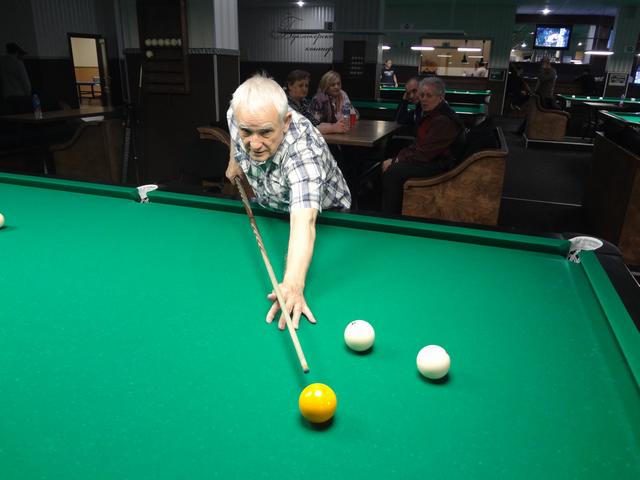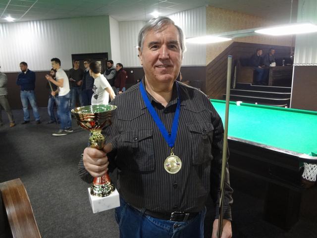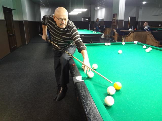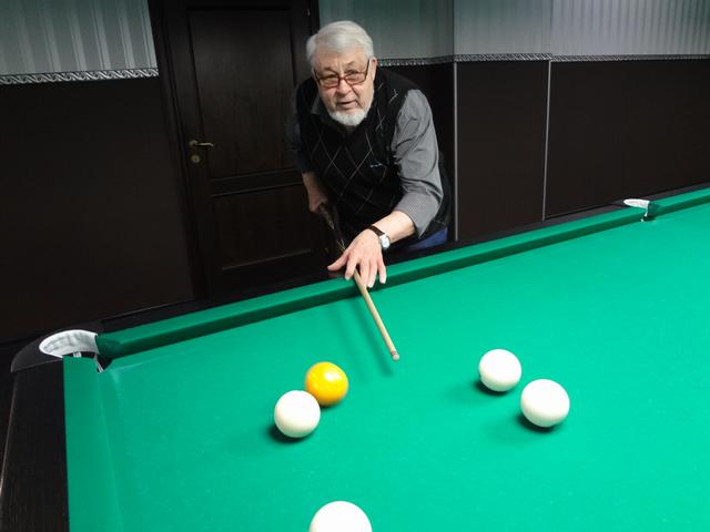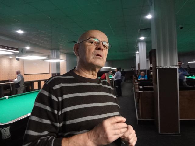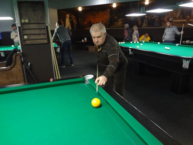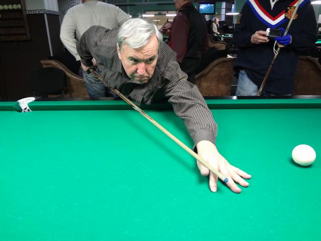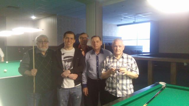 23 февраля 2016 года состоялся турнир ветеранов русского бильярда, который организовали Московская Конфедерация бильярдного спорта и бильярдный клуб «Легенда» Баурова Сергея и Сталева Евгения. На турнир были приглашены любители бильярда, которым исполнилось 60 лет и более. Стартовый взнос для участников турнира составил одну тысячу российских рублей. Средства полученные от стартовых взносов, а так же спонсорские средства были направлены на приобретение памятных подарков участникам турнира, фуршет и частичную компенсацию клубу за его издержки. К сожалению, в отсутствии рекламы этого турнира, участников было маловато. В Москве, по скромным подсчётам, сейчас играет более сотни ветеранов любителей бильярда. В этом легко убедиться посетив бильярдные клубы в дневное время, особенно те, которые адаптированны к доходам современных ветеранов бильярда. И надо отметить, что эти клубы не прогорают из за низких доходов, в них иногда выстраивается очередь за свободным столом.На этот турнир зарегистрировались 16 участников: Байсакалов Еркеш Раисович 22.10.45г. Гишьян Аршак 29.03.47г. Демидов Владимир Иванович 25.09.48г. Джуха Антон Георгиевич 25.06.44г. Журавлёв Валерий Борисович 05.04.49г. Кадышев Владимир Дмитриевич 05.01.41г. Ким Аркадий Иванович 05.0652г. Красавин Александр Юрьевич 18.0254г. Кряковкин Николай Николаевич 30.06.49г. Макаров Юрий Георгиевич 08.07.33г. Меркулов Алексей Игоревич 07.08.51г. Миронов Сергей Максович 23.07.50г. Петров Виталий Васильевич 25.03.53г. Семенович Григорий Тимофеевич 01.01.44г. Сталев Евгений Геннадьевич 25.11.50г. Юпатов Юрий Дмитриевич 16.03.47г. И хотя коммерческого интереса в турнире практически не было, турнир проходил в острой спортивной борьбе. Но ценностью турнира нужно признать дружеский уровень общения его участников, который в жизни нашей встречается не так уж часто. В финале встретились Демидов Владимир Иванович и Гишьян Аршак. Фортуна благоволила Владимиру Ивановичу, он и стал обладателем Кубка этого турнира. Второе место — Аршак Гишьян, третье место — Красавин Александр. Фото с этого турнира: ![]() ![]() ![]() ![]() ![]() ![]() ![]() ![]() ![]() ![]() ![]() ![]() ![]() ![]() ![]() ![]() ![]() ![]() ![]() ![]() ![]() ![]() ![]() ![]() ![]() ![]() ![]() ![]() ![]() ![]() ![]() ![]() ![]() |