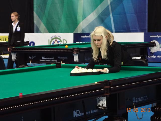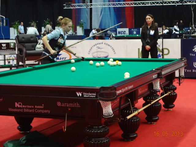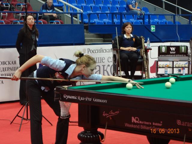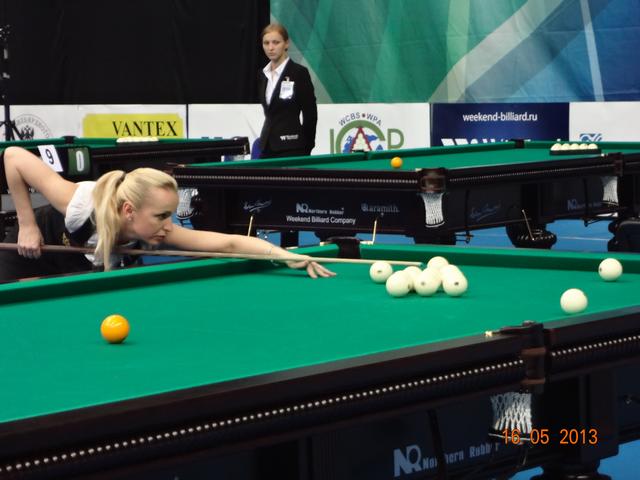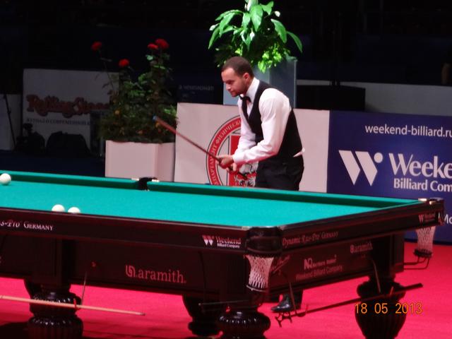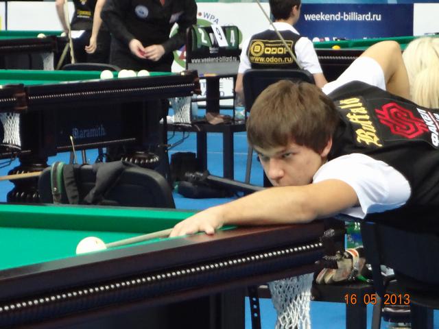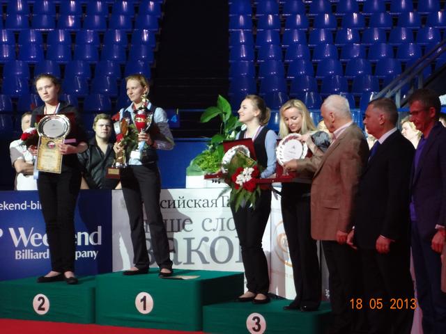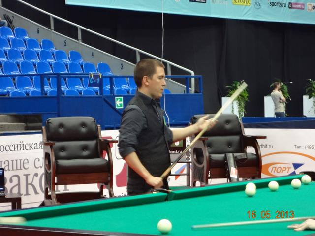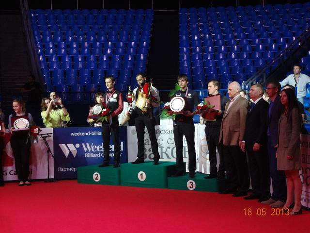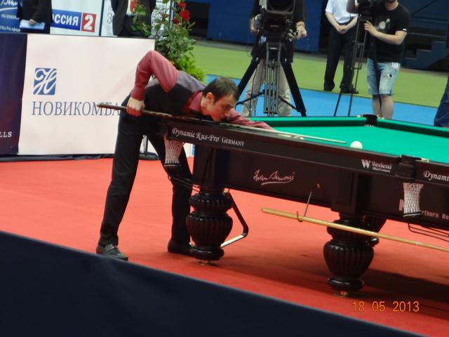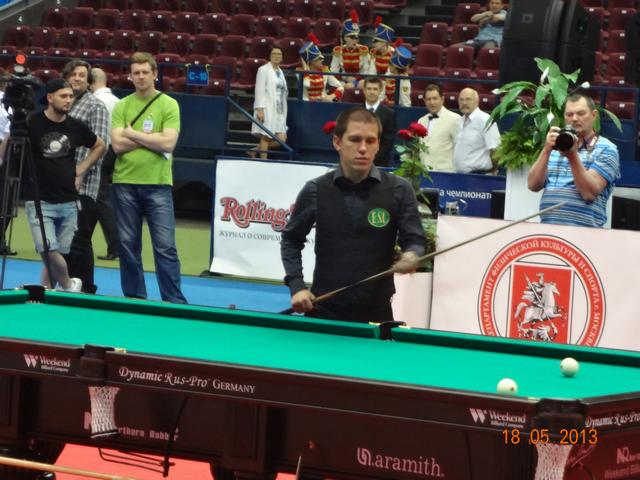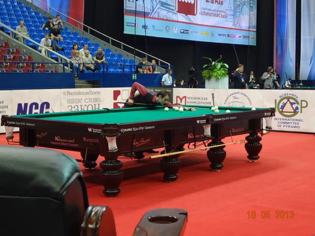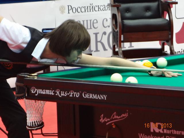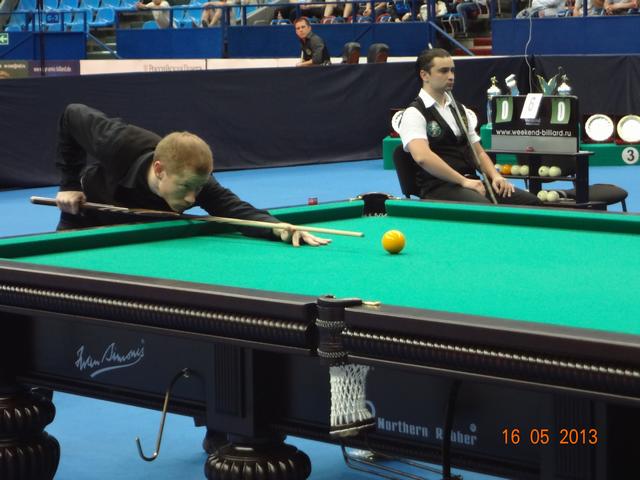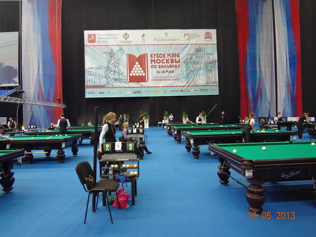 14-18 мая в спортивном комплексе "Олимпийский" проходил международный турнир по русскому бильярду «Кубок мэра Москвы». Турнир этот из разряда коммерческих и поэтому число соискателей призовых было достаточно много. 119 мужчин и 59 женщин из разных городов бывшего Союза боролись за совокупный призовой фонд в два с половиной миллиона рублей, из дальнего зарубежья за такими деньгами никто не решился приехать. Призовые распределялись до 32 места и составляли: за первое место у мужчин-300 тысяч рублей (у женщин-200 тысяч рублей), за второе место -160 (120), за третье и четвёртое место-120 (80), за пятое по восьмое-70 (50), за девятое по шестнадцатое-35 (20), за семнадцатое по тридцать второе-15 (10). Как видим, те участники, которые попали в восьмёрку сильнейших, отбивали свои расходы за проезд, гостиницу и питание за пять дней турнира. В турнире участвовало много титулованных спортсменов – чемпионов мира, Европы и России, поэтому участвовать в таком турнире весьма престижно. Правда, многие из титулованных вынуждены были сложить оружие задолго до финальных встреч. На пьедестал победителей в это раз поднялись: У мужчин: 1 Вартикс Марис мсмк 1987 гр Рига 2 Вайнцвайг Владимир мсмк 1985 Москва 3-4 Сталев Евгений мсмк 1979 Москва 3-4 Ливада Никита мсмк 1995 Ростов на Дону У женщин: 1 Миронова Диана мсмк 1996 гр Москва 2 Милованова Ольга мсмк 1986 С-Петербург 3-4 Максимова Светлана мсмк 1979 Москва 3-4 Ярошевич Полина мс 1993 Воронеж В женском турнире практически не было сомнений, что Миронова Диана займёт верхнюю строчку итогового протокола. В финале она легко одолела двукратную чемпионку мира Милованову Ольгу. Можно отметить хороший результат спортсменки из Воронежа, которая оставила позади себя почти дюжину мастеров спорта международного класса. В мужском турнире почти до конца финальной встречи сохранялась интрига. Кумир московских болельщиков Евгений Сталев не без труда, но всё - таки попал в полуфинал, где судьба свела его с Владимиром Вайнцвайгом. Манера игры Евгения в последних турнирах отличается большим количеством отыгрышей. Он долго и с завидным упорством перекатывает шары с одного борта на другой и это приносило ему часто успех. У его соперников не было такого богатого опыта в коммерческих играх, и они не выдерживали такой тактики, бросались в атаку и проигрывали. Но с Владимиром у него «нашла коса на камень», тот тоже оказался большим и терпеливым мастером отыгрыша. Уже во второй партии их встречи, после получасового пассивного перекатывания шаров, когда и судьям стало невмоготу от их «нанайской» борьбы, шары были установлены в усечённую пирамиду и были разбиты по действующим правилам. Игра сразу оживилась, и Вайнцвайг уверенно выиграл эту партию. Далее встреча продолжалась с переменным успехом, но в итоге в финал вышел Владимир. Евгению пришлось довольствоваться третьим – четвёртым местом. Конечно, на "Кубке мэра Москвы" было много жарких и упорных баталий и немногочисленные любители бильярда, которым удалось побывать на этом турнире, смогли насладиться филигранным мастерством его участников, получить хороший урок для собственного игрового опыта. Закончился турнир на мажорной ноте. Перед вручением наград победителям и призёрам турнира организаторы предусмотрели небольшую концертную программу, ну а после награждения - традиционная фотосесия. ![]() ![]() ![]() ![]() ![]() ![]() ![](