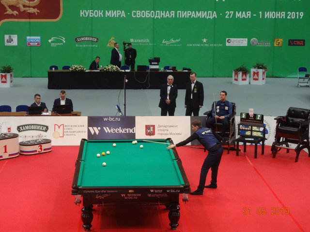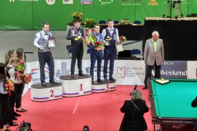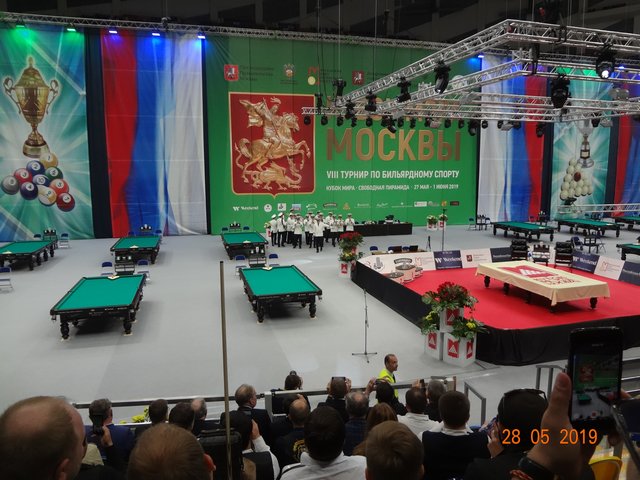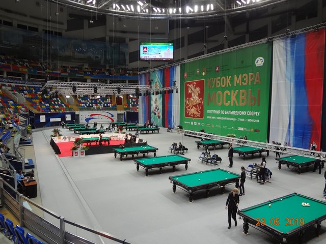 С 27 мая по 1 июня в самом большом крытом спортивном дворце Москвы "Мегаспорт" проходил один из самых престижных турниров по русскому бильярду "Кубок Мэра Москвы" в дисциплине "Свободная пирамида". Организаторами "Кубка Мэра Москвы" являются Департамент спорта города Москвы, Московский Союз бильярдного спорта (МСБС) и ФГБУ "Редакция "Российской газеты". Турнир проходит при поддержке Правительства Москвы и под эгидой Международной Конфедерации Пирамиды и Федерации бильярдного спорта России. "Кубок Мэра Москвы" имеет статус Кубка мира и принимает всех любителей русского бильярда независимо от пола возраста и уровня игры, отвечающих требованию регламента этого турнира и уплативших стартовый взнос. На этом турнире стартовый взнос для мужчин составлял 6 тысяч рублей, а для женщин 5 тысяч. Призовой фонд на этом турнире остается одним из самых больших на российских соревнованиях по бильярдному спорту и составил в этом году 3 млн. рублей. Он распределяется следующим образом: у мужчин: 1 место - 350 000 руб., 2 место - 180 000 руб., 3 место - 130 000 руб., 5-8 место - 80 000 руб., 9-16 место - 40 000 руб., 17-32 место - 20 000 руб.; у женщин: 1 место - 250 000 руб., 2 место - 130 000 руб., 3 место - 95 000 руб., 5-8 место - 50 000 руб., 9-16 место - 30 000 руб., 17-32 место - 15 000 руб. В этом году на турнир зарегистрировались 141 спортсмен из 9 стран (98 мужчин и 43 женщины). На турнир съезжаются лучшие игроки русского бильярда, в основном с постсоветского пространства, это даёт им возможность пообщаться, обменяться опытом и неплохо провести время в нашей столице. Больше половины участников этого турнира имеют спортивные звания: змс, мсмк, мс. За Москву заявилось более 30 участников турнира, но в верхней части итоговых протоколов их маловато. В мужском турнире принимали участие чемпионы мира по русскому бильярду: Никита Ливада, Дмитрий Белозеров, Леонид Швыряев, Юрий Пащинский, Эдуард Галиянц, Иосиф Абрамов, Сергей Крыжановский, Александр Чепиков, Дастан Лепшаков, Каныбек Сагынбаев. У женщин три чемпионки: Диана Миронова, Ольга Милованова и Дарья Михайлова. Финальная встреча в женском турнире свела юную участницу турнира Нагулу Элину (кмс) и многократную победительницу и самую сильную спортсменку русского бильярда Миронову Диану (мсмк). Игра была на редкость упорная. К концу встречи Элина вела со счётом 4:3 и ей оставалась всего одна победа, но Диане удалось выиграть эту партию. При счёте по партиям 4:4 (игра до 5 побед) партию разбивала Элина и ей удалось с разбоя положить своего шара и забить ещё один шар. Игра перешла в фазу отыгрышей и здесь у Дианы пропала уверенность в победе, она дважды делает штрафные удары. Казалось, что теперь уже судьба первого места решена, но Диана настоящий боец. После многочисленных отыгрышей счёт становится равным 7:7 и Диана получает наконец шанс: из сложнейшей позиции удаётся её коронный удар "свой вдоль короткого борта на вращеньи и отскоке в угол". Диана — победительница. В финале мужского турнира встретились как и в женском спортсмены двух уровней спортивного рейтинга Царёв Михаил (кмс) и Белозёров Дмитрий (мсмк), но результат здесь был другой. Михаил эту встречу провёл уверенно и выиграл с большим отрывом 7:2. При этом в трёх партиях выиграл на "сухую" 8:0. Надо признать, что Михаил Царёв это открытие в русском бильярде, и я уверен, что мы ещё не раз увидим его среди лидеров крупнейших соревнован
