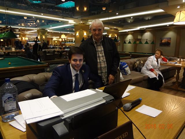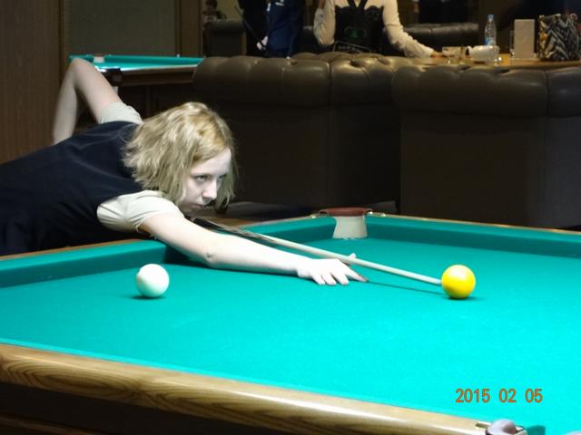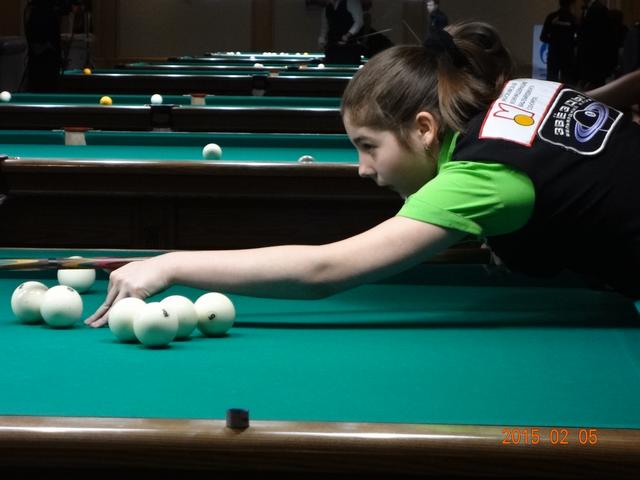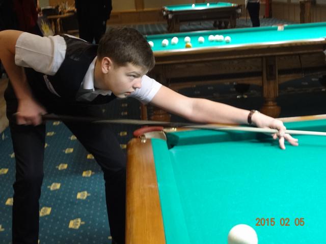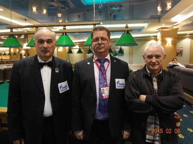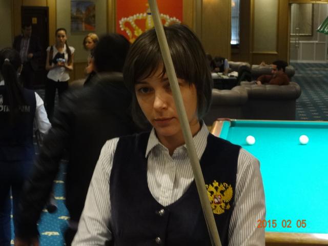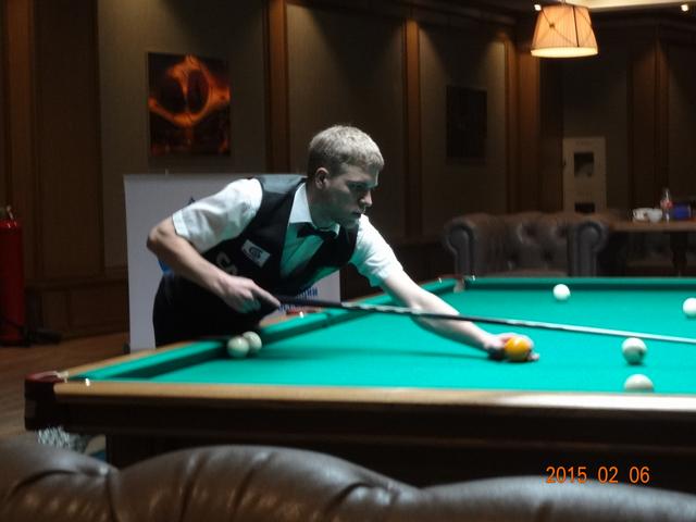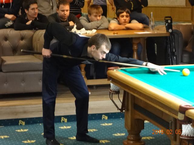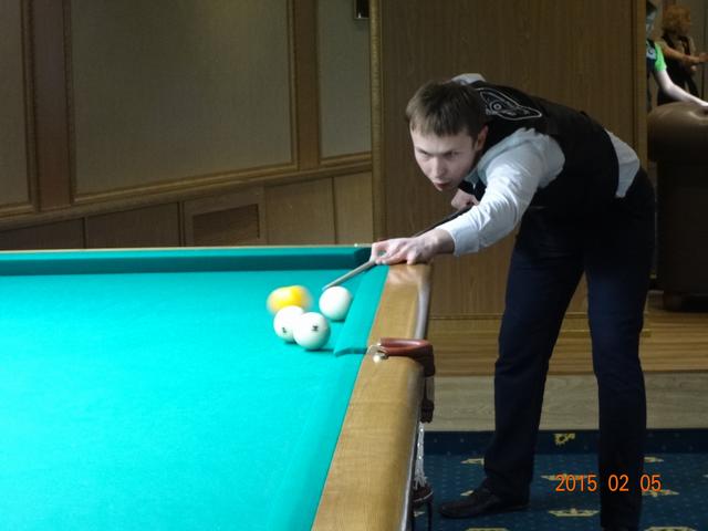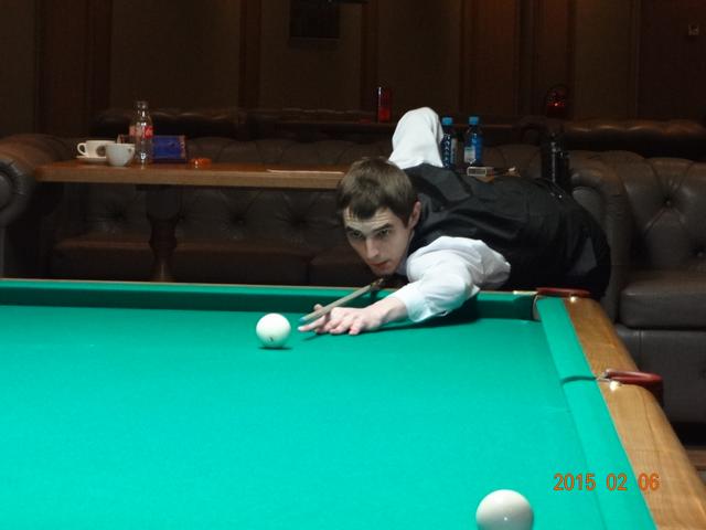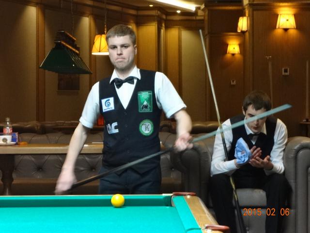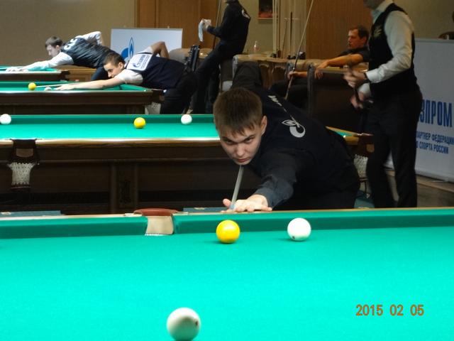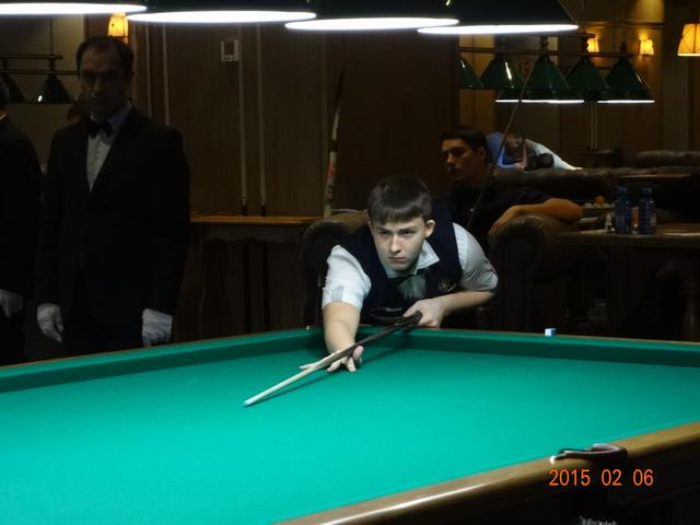 7 февраля завершился Чемпионат России 2015 года по «Пирамиде комбинированной». Чемпионат проводился в Москве в новом бильярдном клубе «Принц», недалеко от станции метро «Тёплый стан». Место проведения выбрано весьма удобно и для спортсменов и для организаторов этого чемпионата. Как известно, в России все пути ведут в Москву, а близость клуба к станции метро, достаточное количество бильярдных столов и наличие приличной гостиницы в комплексе «Принц» делают это место идеальной площадкой для подобных соревнований. Пожалуй единственным и существенным недостатком этого клуба можно считать отсутствие мест для зрителей, а это весьма важно для рекламы и продвижения русского бильярда в массы. Столы белорусские от «Руптур» установлены с очень свободными лузами (на бильярдном сленге — слишком лоханистые). Особенно в начале турнира игроки очень дивились — сколь много падает «дураков», будто их соперники играют не на том же столе. Столы очень раскатистые. Для «пирамиды комбинированной», в которой очень важно контролировать биток, приходиться играть на очень тихих ударах и поэтому игра затягивается. Ведь осторожная игра требует много времени и затрат напряжения как физического так и психического. Особенно ярко это продемонстрировал мужской финал — одинадцать партий продолжались почти шесть часов, и это при таких свободных лузах. Время на подготовку к удару не ограничивалось, и игроки, научившись в шоу бизнесе, артистично перед ударом обнюхивали позицию обходили трижды стол, приседали, строили мины... Ведь у них нет временных рамок для подготовки к удару. В мужском чемпионате играли 113 спортсменов, география представительства довольно внушительная, много мсмк, два змс, но в финале играли мастер спорта из Кемерово Тузов Сергей 1987 года рождения и кандидат в мастера спорта от Москвы Плотников Павел 1995 года рождения. Финал оказался очень напряжённым, игра шла с переменным успехом до шести побед. После сыгранных десяти партий, при счёте 5:5 началась настоящая «контровая», которая и преподнесла некоторый сюрприз. По ходу партии счёт в «контровой» стал 7:6 в пользу Тузова, и казалось, для него опытного и мудрого игрока шансы на успех более предпочтительны. Но в игру вмешалось приведение, после серии отыгрышей Сергей ошибается, Павел кладёт свой седьмой шар и подкатывает в середину последнего «чужого» почти напрямую. Надо сказать, что такой шар, даже для игрока средней руки, не является сложным, но Павел волнуется и сильно бьёт этого «чужого». Удар не точен, шар, отразившись от двух губок средней лузы, падает в противоположную среднюю. Финал окончен, довольны не все... И наличие приведения в том, что за всё время финальной встречи ни у кого из соперников не упал в лузу ни один «дурак», кроме последнего и рокового. На мужском чемпионате играли и юные спортсмены: Абрамов Иосиф 2001 года рождения из Краснодара (вошёл в 32 лучших),Балов Артём 2000 гр. из Пензы (вошёл в 64 лучших) и самый молодой и наверное самый перспективный из них Виноградов Антон 2004 гр. из Владимира (вошёл в 64 лучших). Его фотографию покажу и спереди и с тыла... Наверняка мы ещё увидим этих ребят среди победителей бильярдных баталий. Восемь сильных игроков ФБСР по «пирамиде комбинированной» 2015г. 1 Плотников Павел 1995 КМС Москва 2 Тузов Сергей 1987 МС Кемерово 3-4 Еркулев Олег 1988 МС Оренбург 3-4 Курман