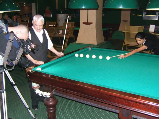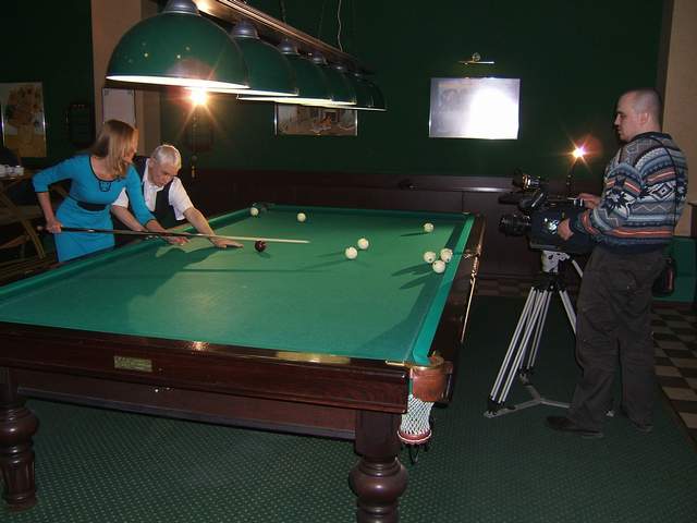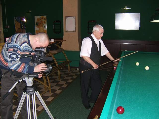 На днях ко мне обратились с телеканала "Доверие" с предложением поделится опытом в деле обучения бильярду. Что из этого получилось, вы можете посмотреть в утренней передаче 27 января, а также из снимков на сайте, где мы с Катей – ученицей, подающеё большие надежды, продемонстрировали некоторые элементы бильярдных уроков.